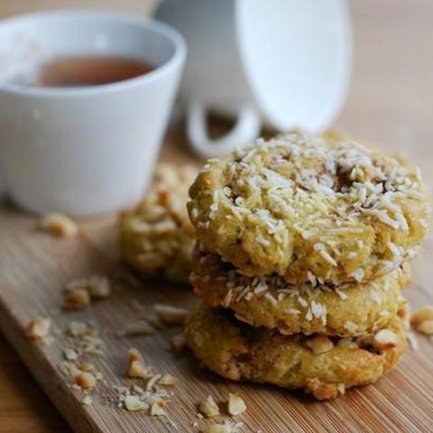 Voiteluun vispattu kananmuna, pinnalle kookoslastut tai pähkinärouhe