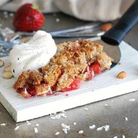 - Sekoita kaikki ainekset yhteen ja lisää voisula. Levitä mansikoiden päälle. Paista uunin alatasolla n. 15-20 minuuttia.