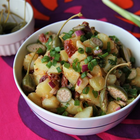 1.Jos käytät vanhoja perunoita, kuori ne. Paloittele keitetyt, jäähtyneet perunat.
