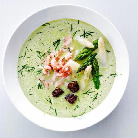 Vihreä parsakeitto katkaravuilla ja tillillä