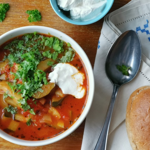 Yrttinen kesäkurpitsakeitto